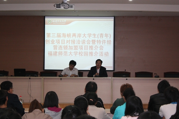 11月12日,由省公务员局(省人力资源开发办公室)、省教育厅、团省委和中国海峡人才市场联合主办的第三届海峡两岸大学生创业项目对接洽谈会暨特许经营连锁加盟项目推介会在福州大学至诚学院举行。