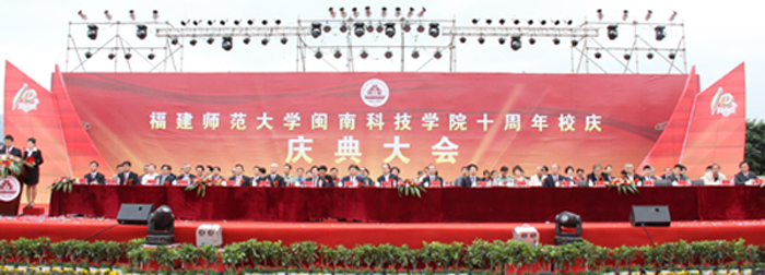 11月16日上午,闽南科技学院隆重举行建院十周年庆典大会。省委教育工委副书记、省教育厅党组成员郭绍生,省侨办党组成员、纪检组长闵蕙君,省侨联副主席谢小建,泉州市委常委、宣传部长、教育工委书记陈庆宗,菲律宾菲华各界联合会名誉主席、闽南科技学院董事长戴宏达,南安市人民政府代市长王春金,菲律宾菲华商联总会名誉董事长、前菲律宾总统特命大使、菲律宾中正学院董事长黄呈辉,闽南科技学院常务副董事长戴新民,莆田学院党委书记郑才木,福建信息职业技术学院党委书记黄锦平,泉州师范学院副校长林华东,福清分校校长陈盛,以及爱体育网_爱体育网(中国)校长黄汉升、原党委书记苏玉泰、副校长许明、凌启淡等领导和嘉宾出席庆祝大会。