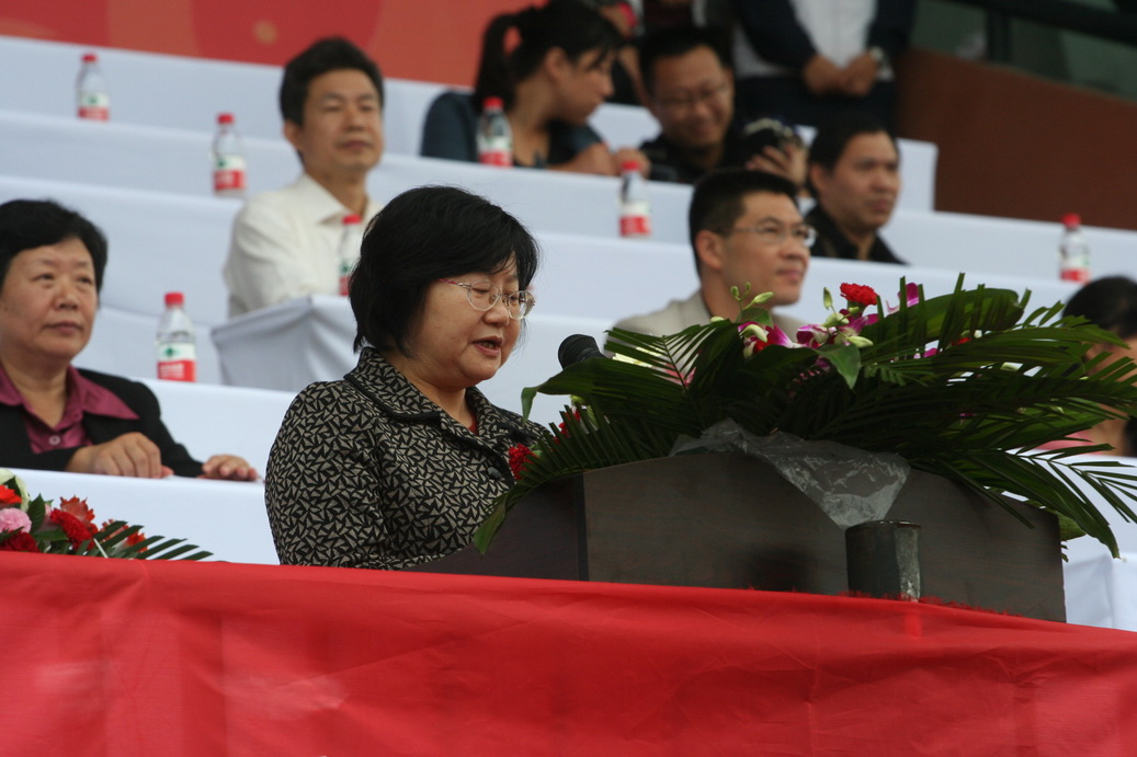 副校长、校体委主任李敏教授致开幕辞。她代表大会组委会,向本届体育节的开幕表示热烈的祝贺,向为体育节筹备工作付出辛勤劳动的全体工作人员表示衷心的感谢,向全体参与比赛的裁判员、运动员表示诚挚的慰问,勉励全体运动员奋勇争先、顽强拼搏,赛出竞技水平,赛出道德风尚,赛出个性风采,赛出团结友谊,并预祝大家取得优异成绩。