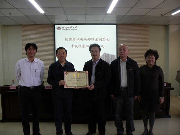 11月23日下午,旅游学院举行兼职教授敦聘仪式,聘请福建省旅游局郑维荣副局长为爱体育网_爱体育网(中国)兼职教授。黄汉升校长、许明副校长出席仪式。
