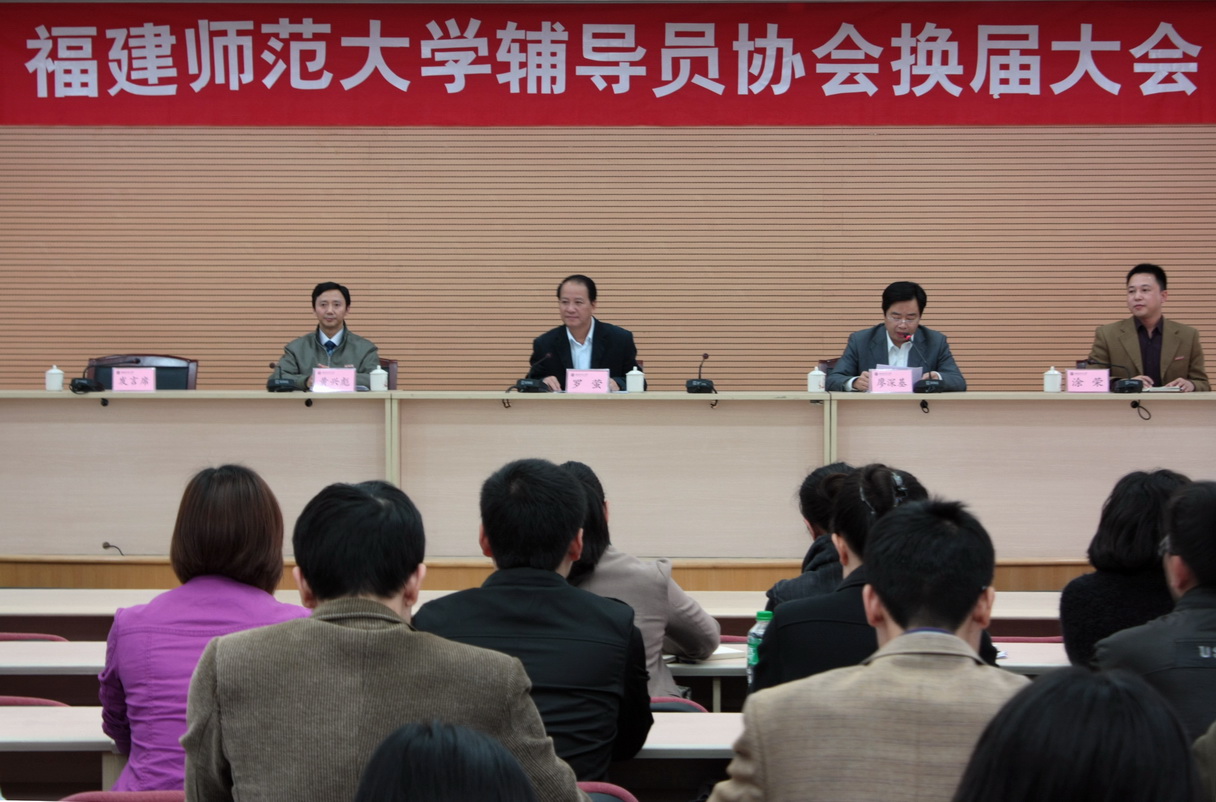 大会于11月25日下午在旗山校区第九会议室召开。校党委罗萤书记,学工部、研工部、校团委主要负责人,校本部各学院、协和学院、人民武装学院、信息技术学院全体辅导员,福清分校、闽南科技学院辅导员代表参加了换届大会。