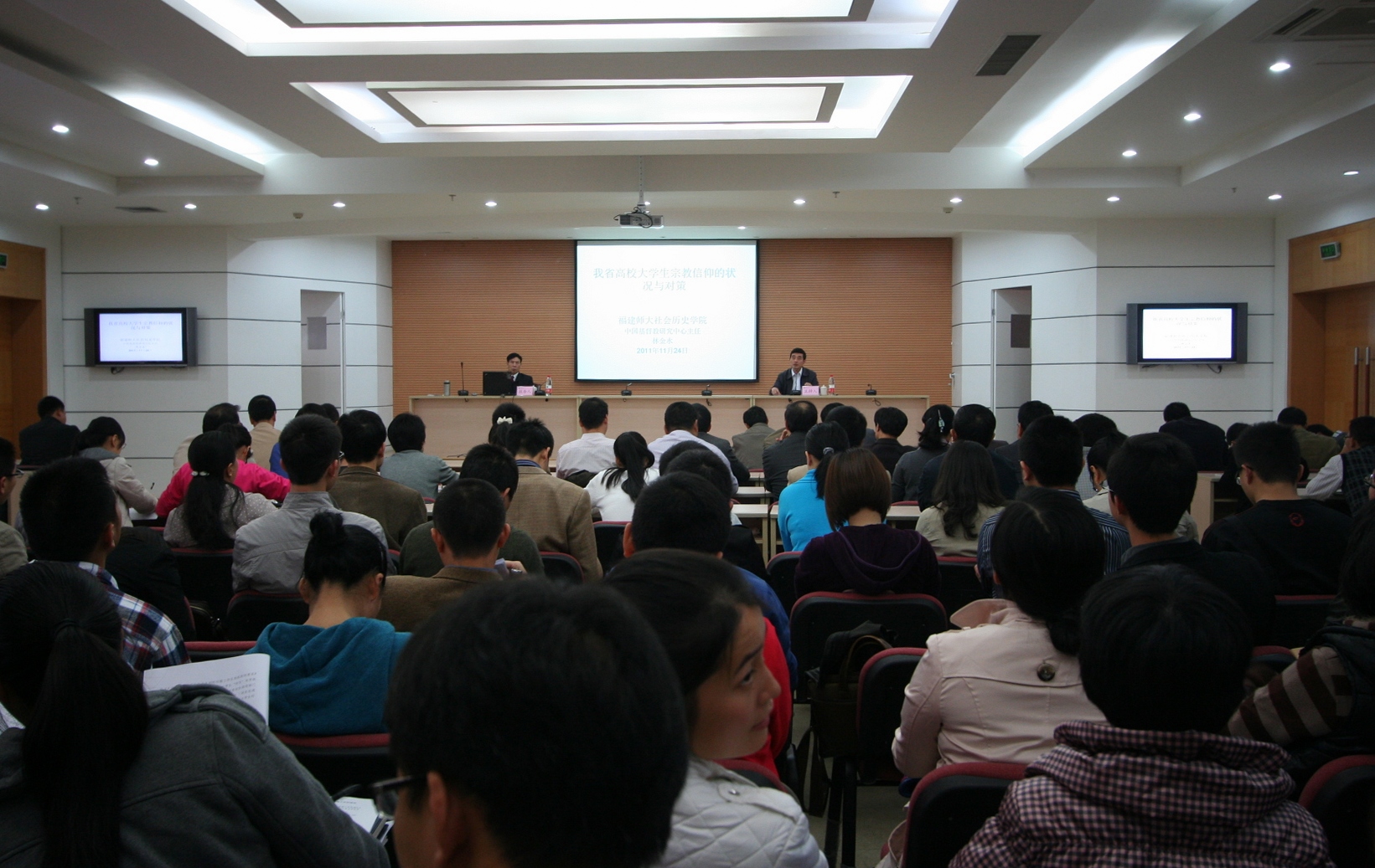 省政协常委、社会历史学院博士生导师林金水教授应邀作了题为“我省高校大学生宗教信仰的状况与对策”的专题知识讲座。林金水教授从正确认识社会主义时期的宗教问题、我省大学生宗教信仰的现况、福建大学生宗教信仰原因、大学生宗教信仰引发的问题、相应的对策与建议等五个方面深入解说了马克思主义宗教理论和党的宗教方针政策,分析了大学生宗教信仰的现状及成因,并提出了很好的意见和建议。整场讲座内容丰富、资料翔实、逻辑清晰、语言幽默风趣,受到与会人员的一致好评。