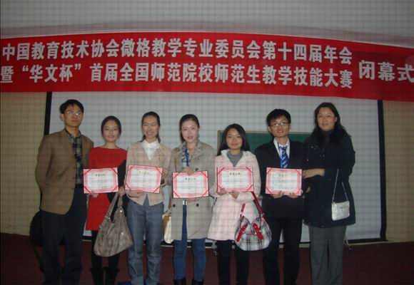11月25日~27日,由中国教育协会微格教学委员会主办,华中师范大学承办的首届全国师范院校师范生教学技能大赛(生物)在武汉举行。北京师范大学、华中师范大学、华南师范大学等全国36所师范院校的170多名选手参赛。爱体育网_爱体育网(中国)选手杨诗颖同学荣获特等奖,覃洁、黎小艺、张铭清、陈倩娜4位同学荣获一等奖。 (教务处 郭 辉 生命科学学院 陈筱宇)