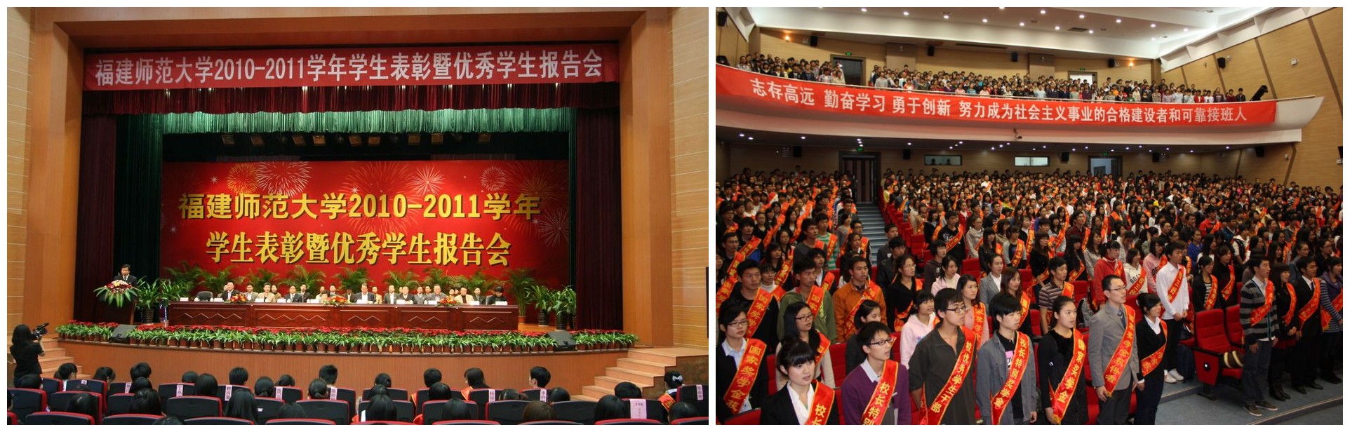 会上,校纪委许歌平书记和凌启淡副校长分别宣读了2010-2011学年国家奖学金获得者以及受省级、校级表彰的学生集体和个人名单。本次大会共表彰了43名国家奖学金获得者;6个福建省先进班集体、11名福建省优秀学生干部、19名福建省三好学生;44个校先进班集体、36名校三好学生标兵、912名校优秀学生干部、808名校三好学生;4名校长特别奖学金获得者、5256名校优秀学生奖学金获得者。