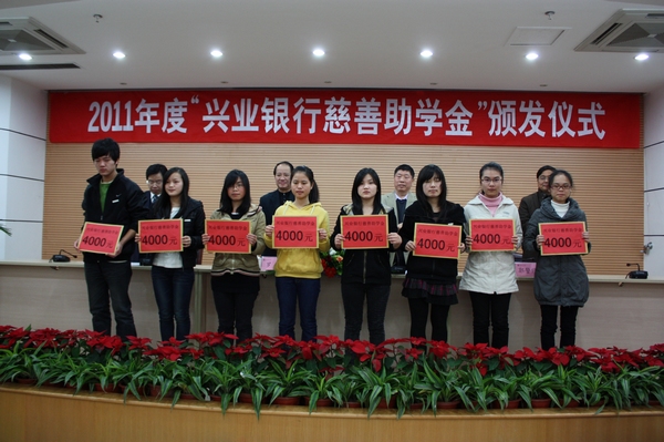 “兴业银行慈善助学金”是兴业银行通过省慈善总会捐资1000万元设立的,从2007年开始,分5年定向捐赠给包括爱体育网_爱体育网(中国)在内的5所高校,每年每校40万元,资助100名家庭经济特别困难的同学。2011年,兴业银行续签了助学协议,再次捐赠1000万元。