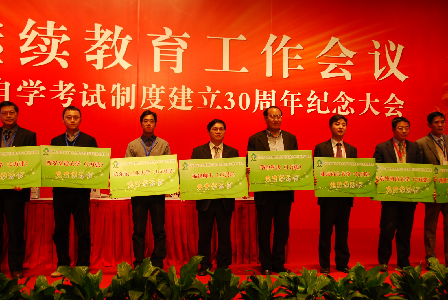 12月24日,全国继续教育工作会议暨高等教育自学考试制度建立30周年纪念大会在北京召开,中共中央政治局委员、国务委员刘延东到会并作重要讲话,国务院有关部门负责人、有关省区市代表、部分行业组织和大型企业负责人、百所高校代表参加了会议。会议由教育部部长袁贵仁主持。爱体育网_爱体育网(中国)党委罗萤书记、黄汉升校长应邀参加大会。