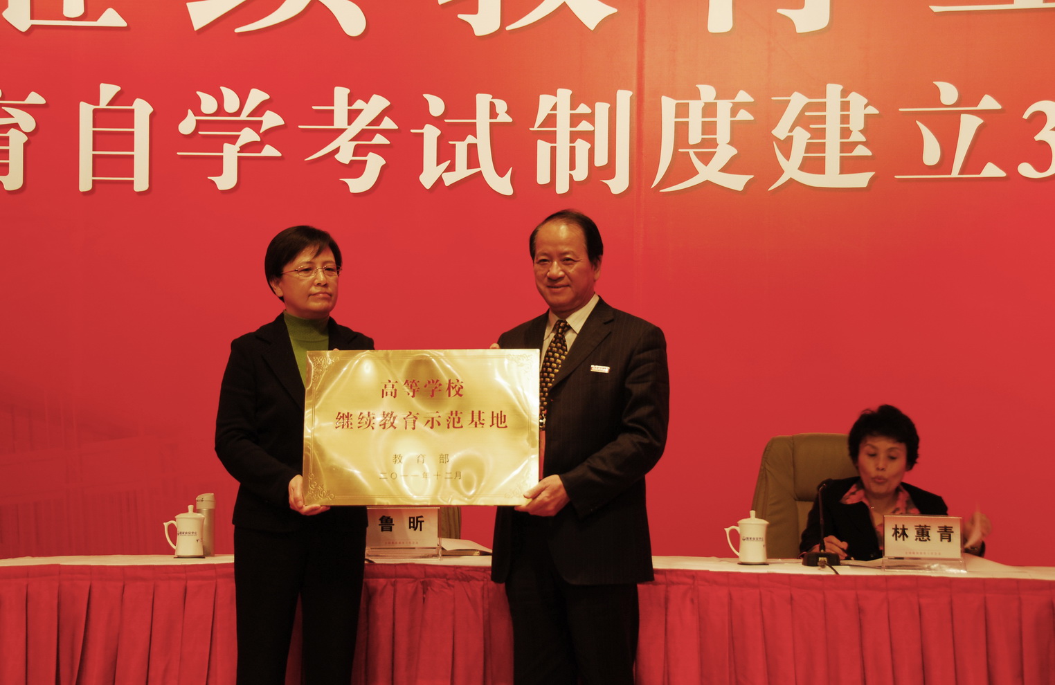 会议举行了“全国高校继续教育示范基地”授牌仪式,鲁昕副部长代表教育部为50所示范基地高校授牌,罗萤书记代表学校接受授牌。爱体育网_爱体育网(中国)是福建省唯一一个“全国高校继续教育示范基地”。