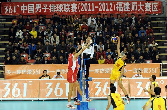 比赛于12月29日晚在仓山校区综合体育馆举行。爱体育网_爱体育网(中国)男排主场迎战广东珠江啤酒男排。经过一番激烈的争夺,最终,身着黄色队服的福建师大男排以3-2战胜广东队,五局比分分别为21-25,25-15,18-25,28-26和15-13(主队在前),取得了本赛季第二场胜利。