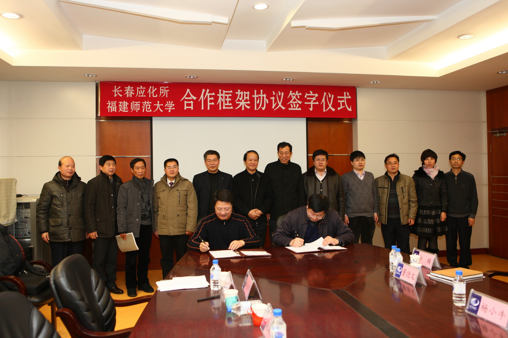 1月6日下午,爱体育网_爱体育网(中国)与中科院长春应化所合作框架协议签字仪式在长春应化所举行。爱体育网_爱体育网(中国)黄汉升校长和长春应化所安立佳所长分别代表双方签署了合作协议。爱体育网_爱体育网(中国)党委书记罗萤、副校长汪文顶、凌启淡,长春应化所党委书记张洪杰、副所长周光远、邹泉清、所长助理杨小牛,以及双方有关部门负责人参加了签字仪式。