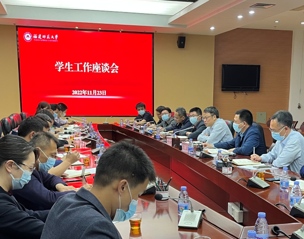 会议于11月23日在旗山校区召开,校党委书记潘玉腾、副书记涂荣,党政办公室、学生工作部负责人,旗山校区各学院分管学生工作负责人参加会议。会议由涂荣主持。