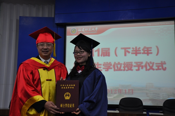 学位授予仪式于1月14日上午在仓山校区邵逸夫楼学术报告厅举行。校领导罗萤、黄汉升、许歌平、汪文顶、凌启淡,机关有关部处负责人,各有关学院党政领导、研究生指导教师、全体研究生公共课任课教师、研究生秘书、辅导员,2011届(下半年)全体研究生,家属代表等出席了学位授予仪式。