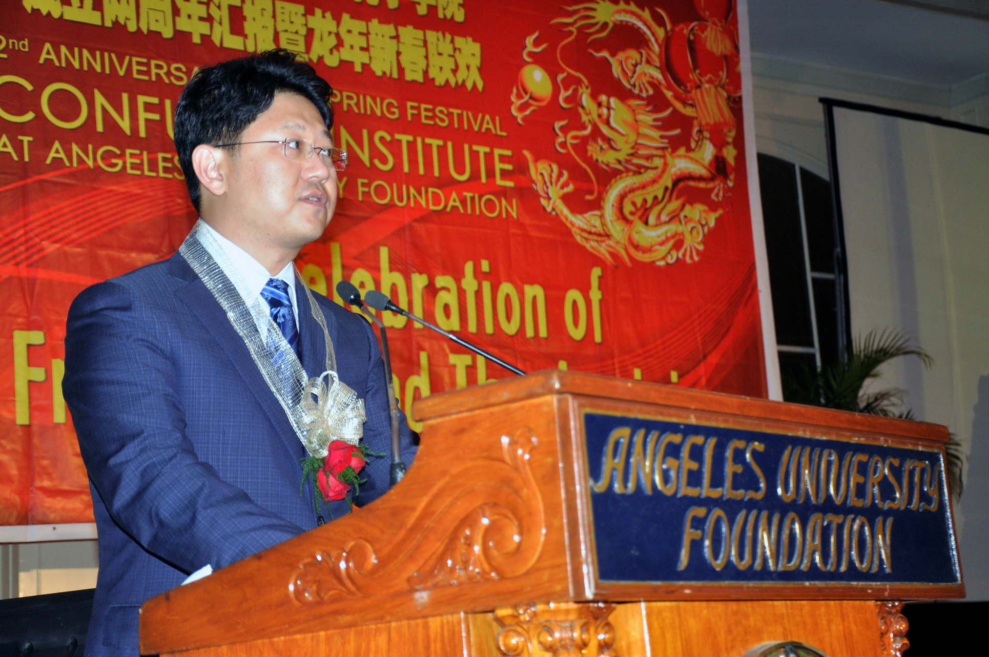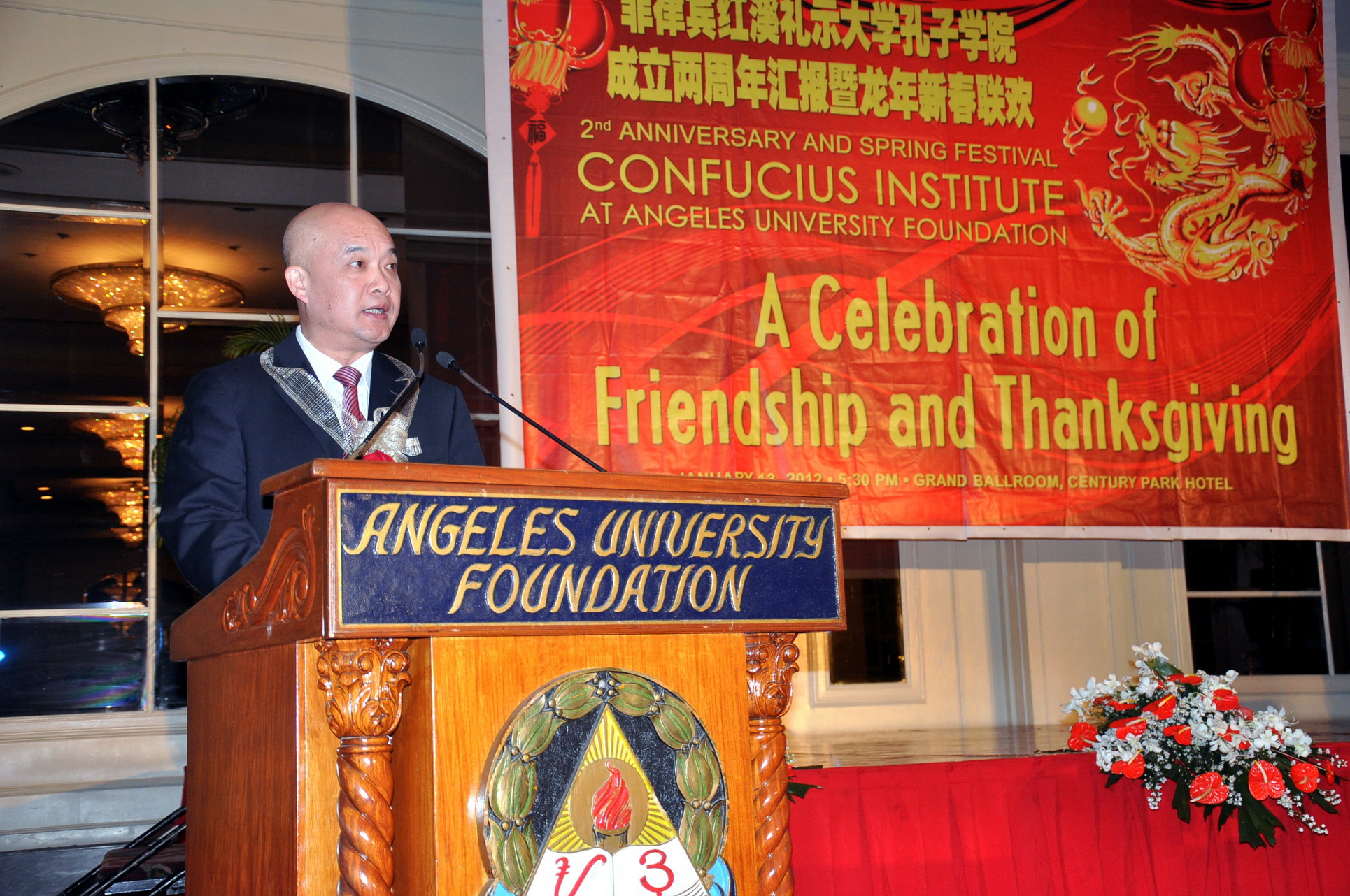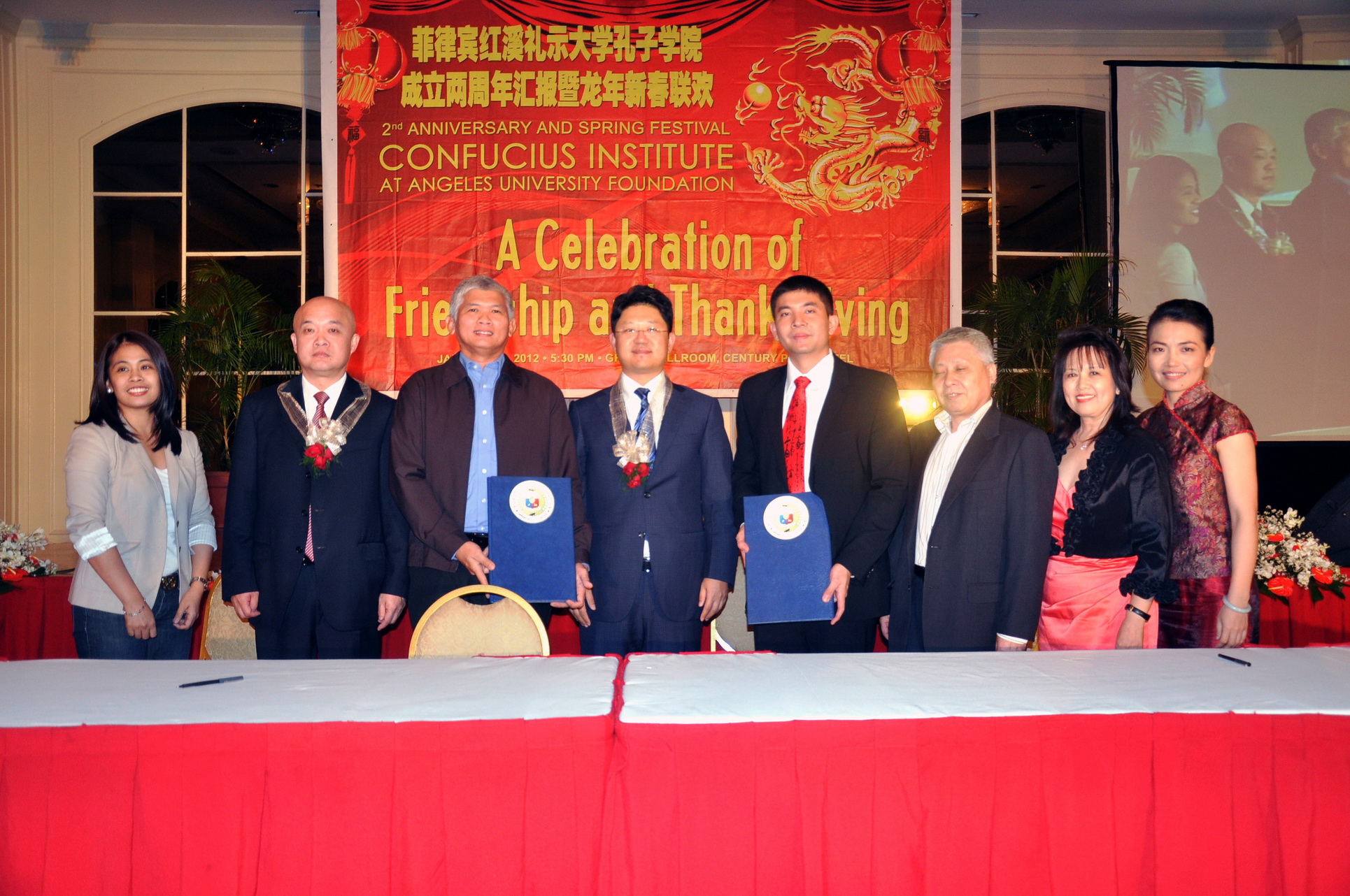1月13日晚,菲律宾马尼拉世纪饭店灯火通明,喜气洋洋,爱体育网_爱体育网(中国)红溪礼示大学孔子学院在此隆重举行两周年工作汇报暨龙年新春联欢会。菲律宾教育部、外交部、海关总署、国家图书馆、副总统办公室等部门及菲律宾国家电网、亚洲开发银行等知名企业和国际性区域组织,悉数派出要员出席庆典,菲律宾参议员Sen.TG Guingona也拨冗出席。许明副校长率爱体育网_爱体育网(中国)代表团一行来到现场,与众多嘉宾一起共同见证了这一美好时刻。