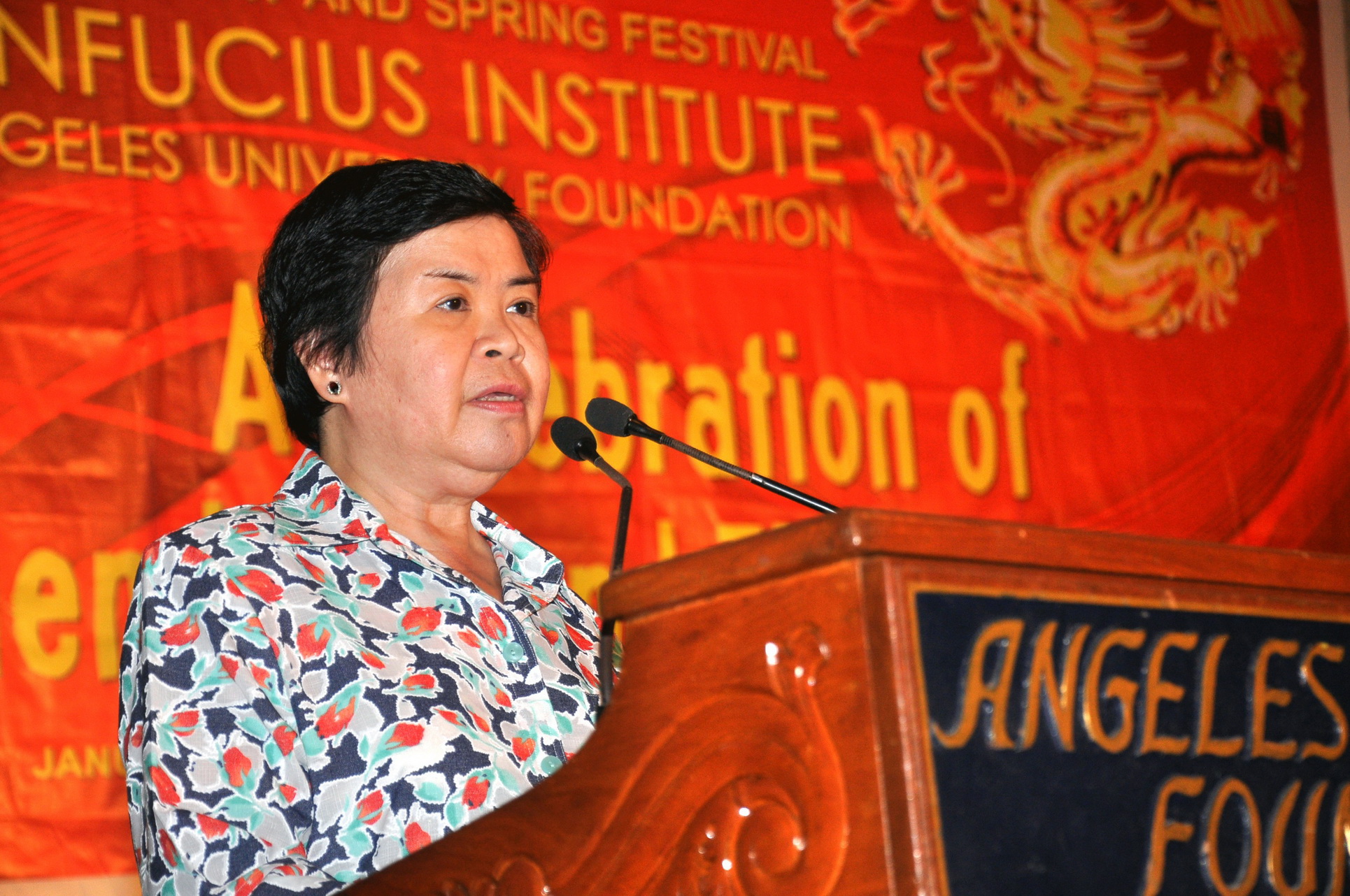 菲律宾教育部中教司司长Dr. Lolita Andrada宣读了菲律宾教育部部长Br. Armin A. Luistro 为孔子学院两周年发来的贺信,并就菲律宾教育部与红溪礼示大学孔子学院在汉语教学项目上的系列合作发表了演讲。