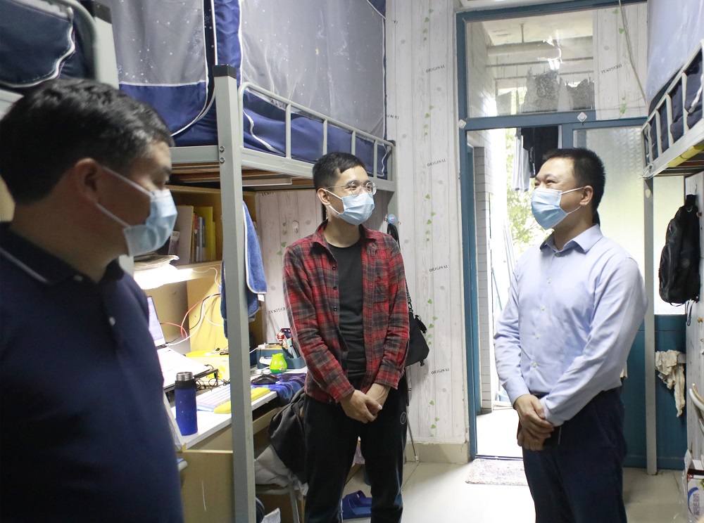 11月28日,校领导涂荣、吴剑锋带领党政办公室、宣传部、学生工作部、保卫处、资产管理处、后勤管理处、基建处、实验室与设备管理处等单位负责人,深入旗山校区和仓山校区学生公寓、快递中心、餐饮场所、实验室、校医院、消防水泵房、架空层停车棚等场所,聚焦消防、水电、食品、校舍、实验室安全等安全管理和校园疫情防控开展检查。