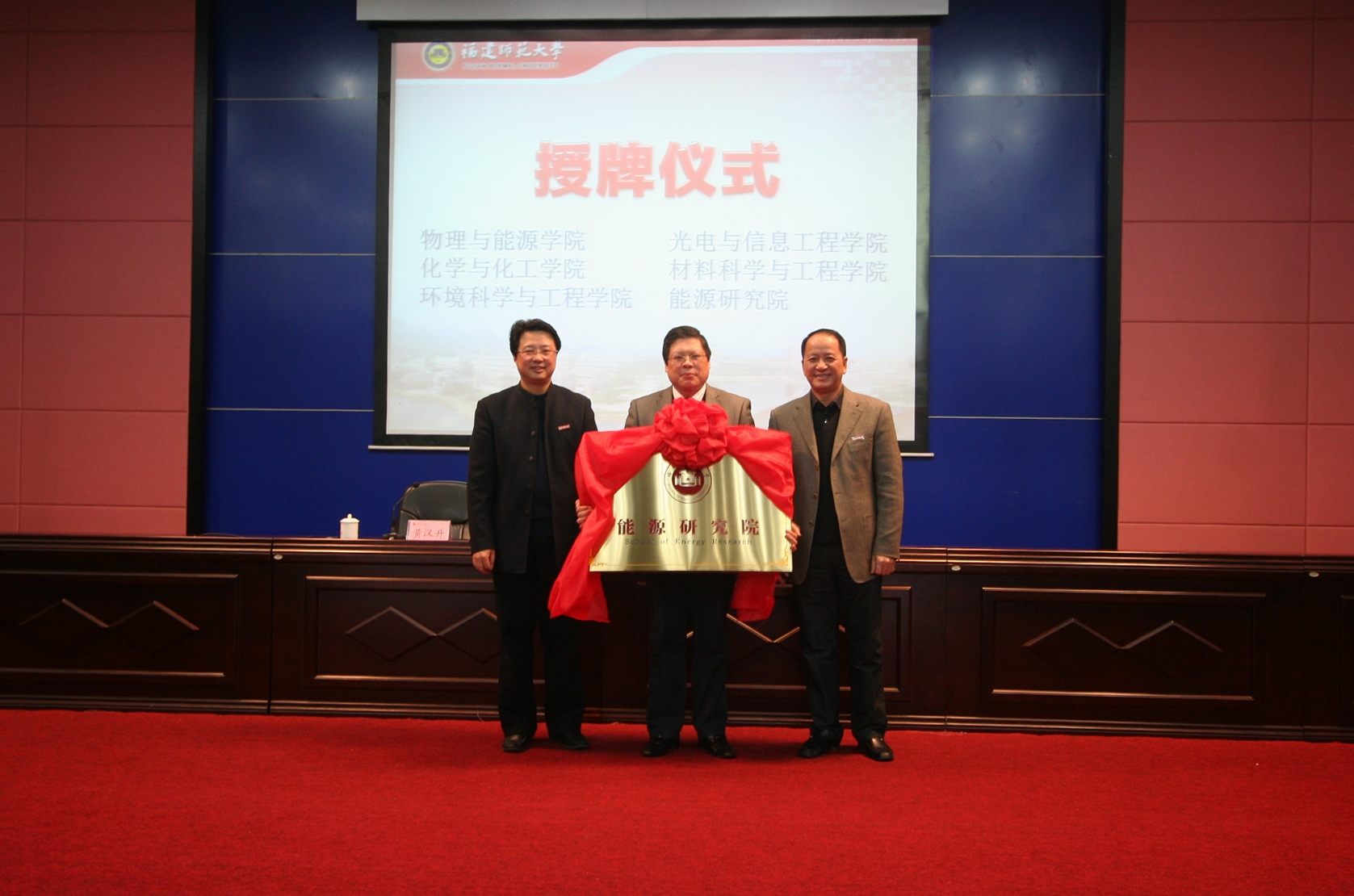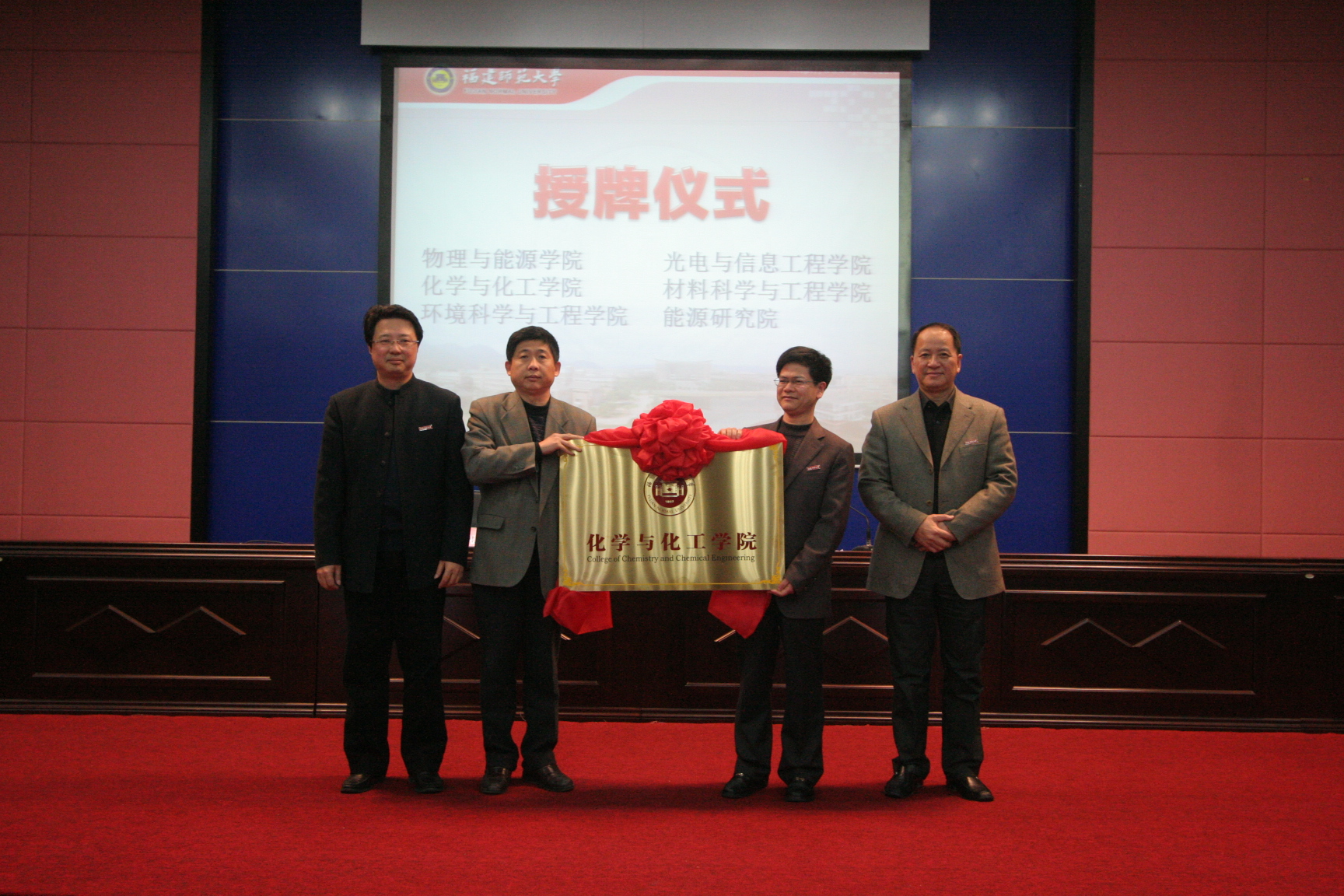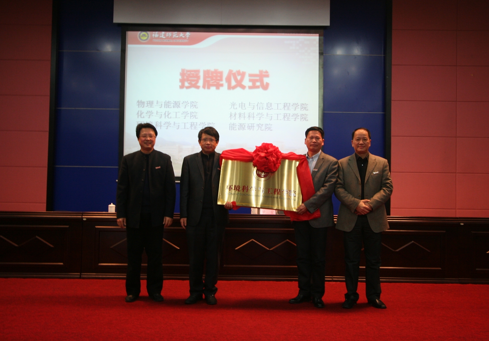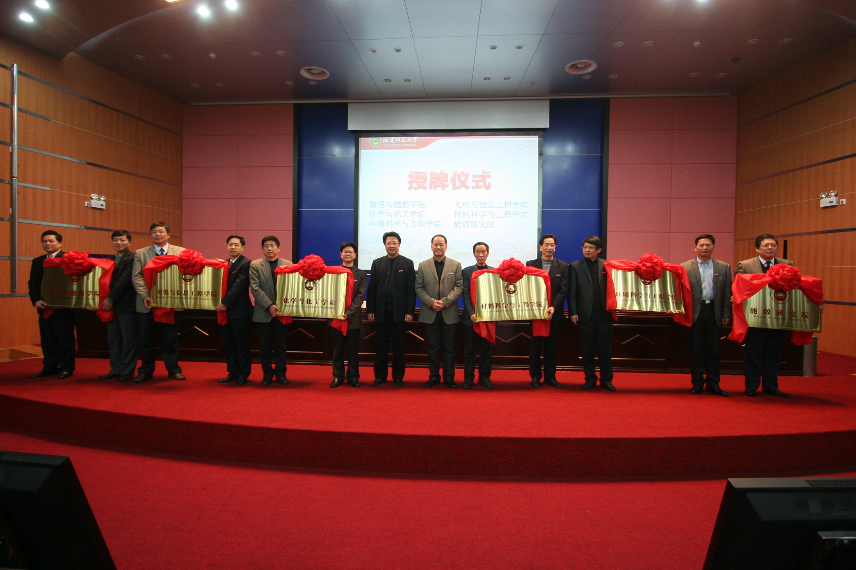 会上还举行了物理与能源学院、光电与信息工程学院、化学与化工学院、材料科学与工程学院、环境科学与工程学院、能源研究院授牌仪式。罗萤书记、黄汉升校长为上述学院(研究院)一一授牌,这标志着爱体育网_爱体育网(中国)理工学科调整优化工作取得了初步成果,进入了一个新的阶段。