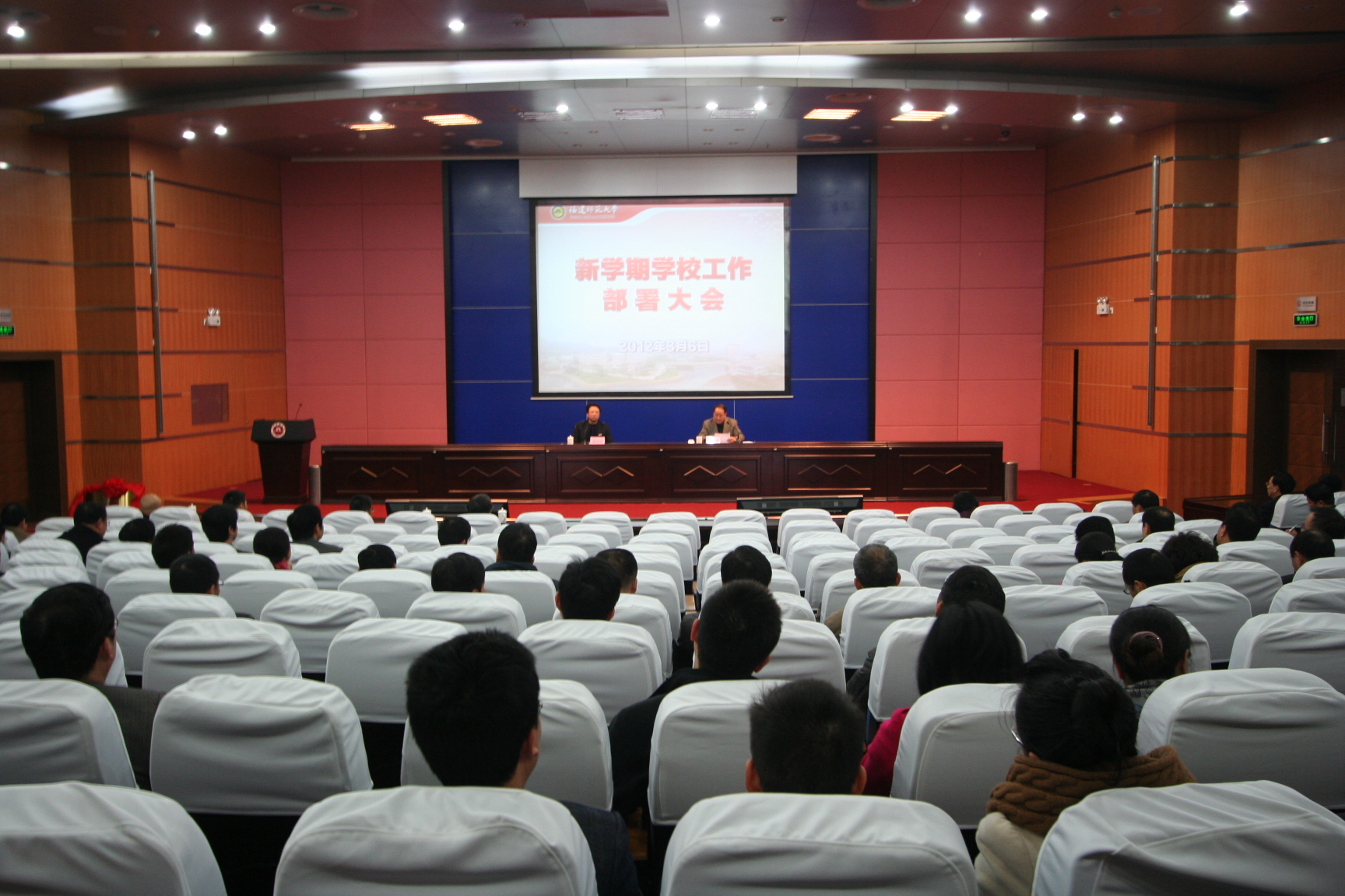 会上,黄汉升校长代表校党委和行政回顾总结了过去一年学校取得的主要成绩,全面部署了本学期学校主要工作:一是以提高质量为核心,加快推进高水平大学建设;二是深化教学改革,培养高素质创新型人才;三是推进学科建设,不断优化学科专业结构;四是实施“113”计划,加快推进人才强校战略;五是推进科研创新,提升科研创新力和贡献率;六是加强校园文化建设,推进文化传承创新;七是推进对外开放办学,增强学校办学活力;八是深化内部管理体制改革,建立现代大学制度;九是加强党建和思政工作,维护校园和谐稳定。他希望大家按照学校的工作部署,结合各自的实际,找准工作的结合点、切入点、着力点和突破点,一件一件地去抓,一件一件地去做,坚持做一件是一件,做一件成一件,讲质量、求实效,努力做到站位有高度、谋划有深度、落实有力度,圆满完成学校确定的各项目标任务,以优异的成绩迎接105周年校庆和党的十八大胜利召开。