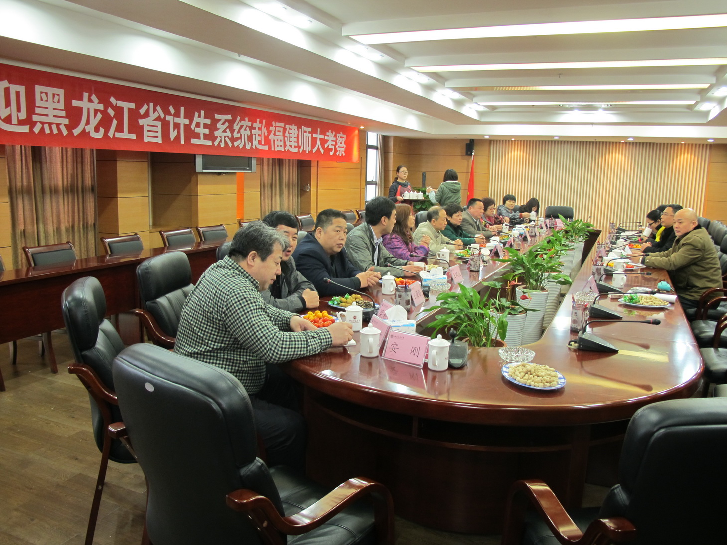 3月13日,黑龙江省计生系统赴福建考察团一行11人在省人口计生药具站站长李虹、福州市人口计生委纪检组长叶明、闽侯县计生局局长赵美芳等的陪同下来爱体育网_爱体育网(中国)参观考察。许明副校长,校计生办负责同志会见了考察团一行。