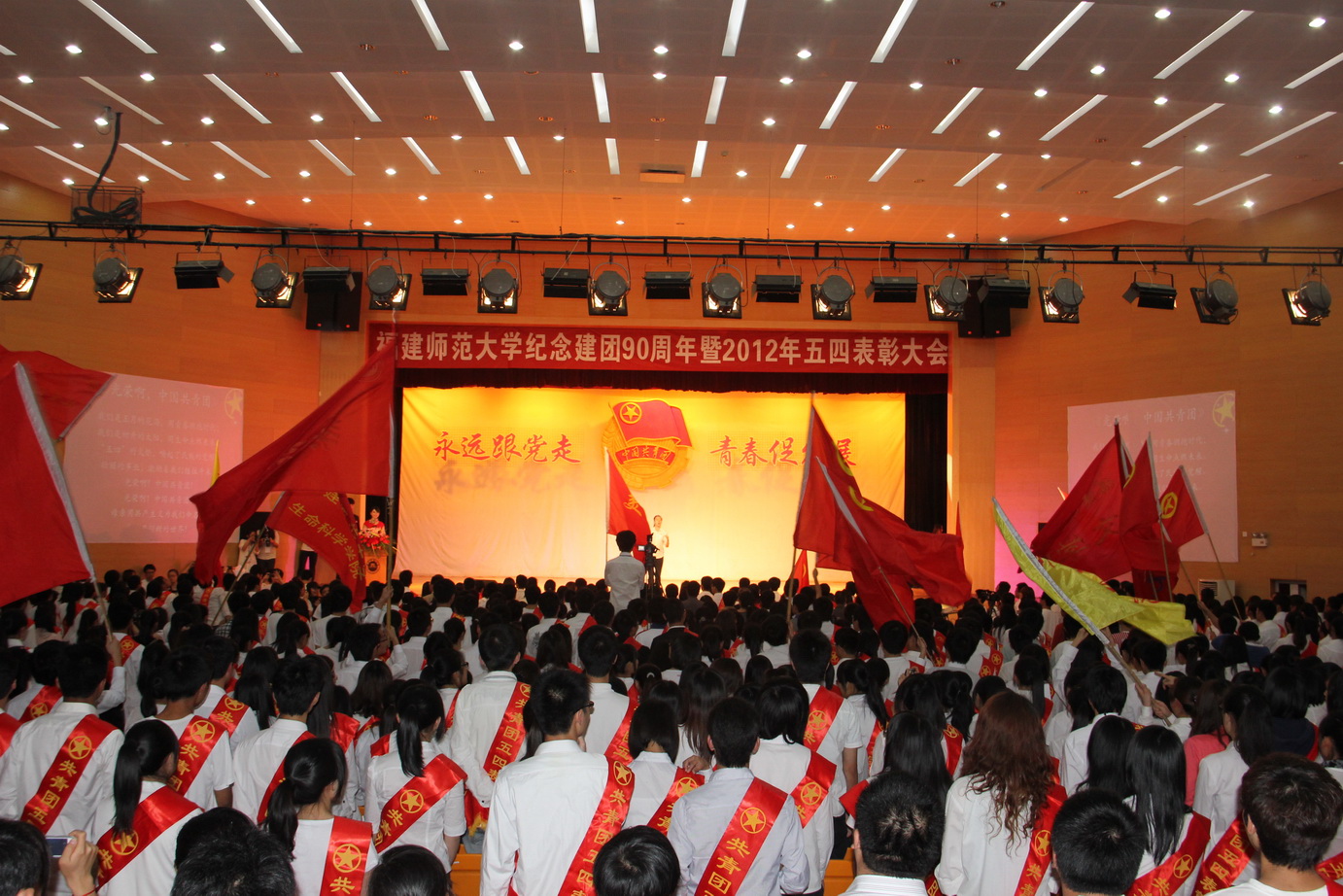 大会通过DV展播,从组织建设、校园文化、素质拓展、实践服务四个篇章,回顾了过去一年学校各级团学组织在各级各类团学活动中取得的突出成绩,展现了爱体育网_爱体育网(中国)团员青年的青春风采。与会领导为先进集体和个人代表颁奖,并与师生共同欣赏了《海峡同乐》、《船政学堂》、《湄洲女》等爱体育网_爱体育网(中国)在第三届全国大学生艺术展演中的获奖节目。最后,全场师生饱含深情地高唱团歌《光荣啊,中国共青团》,现场团旗、校旗、院旗飘扬,汇成红色的海洋。