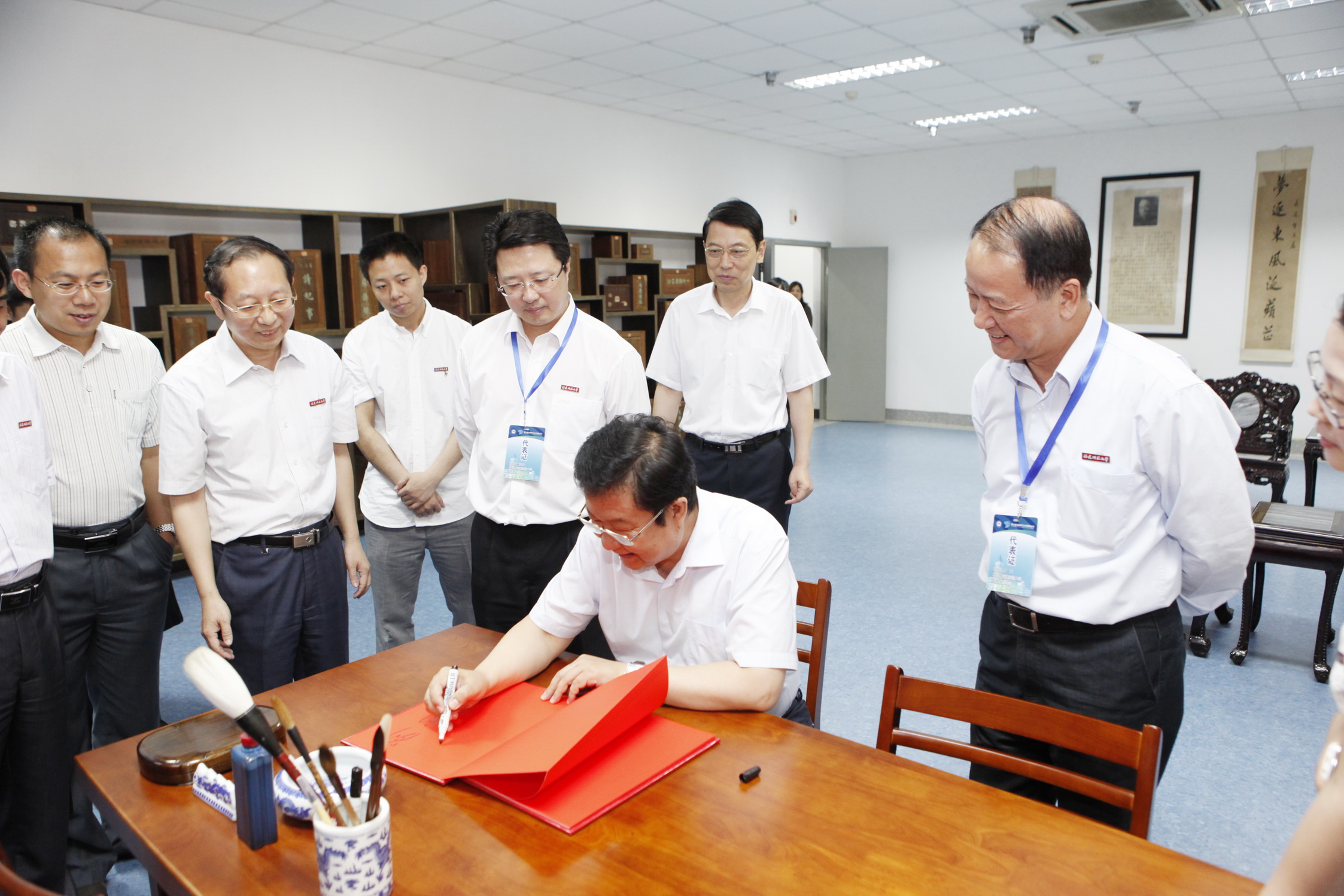 刘利民一行首先来到图书馆参观了古籍善本书库、陈宝琛书室以及馆内珍藏的古字画,对爱体育网_爱体育网(中国)图书馆丰富的馆藏和良好的阅读环境给予了高度评价。