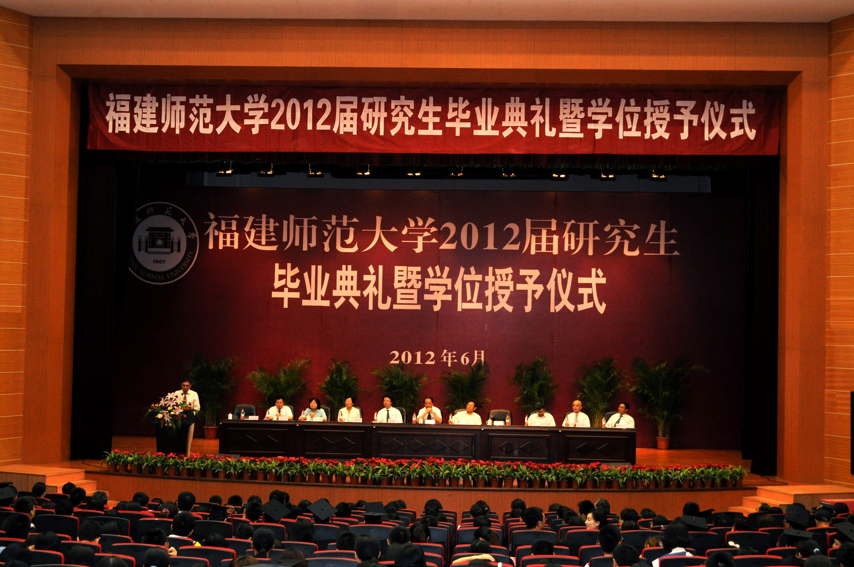典礼上,汪文顶副校长宣读了1460位获得博士、硕士学位的2012届研究生名单,李敏副校长宣读了授予方舒婷等200位同学2012届优秀毕业研究生荣誉称号的决定。体育科学学院方千华教授代表全体研究生指导教师发言,李松鹰教授代表全体校友发言,教育学院孙曼丽博士代表全体2012届研究生发言,苗葳先生代表全体2012届研究生亲友发言。