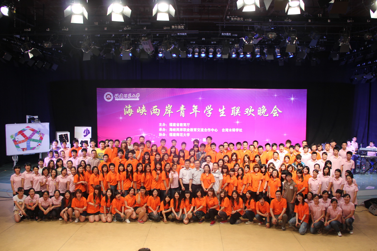 当天晚上,精心筹备的海峡两岸青年学生联欢晚会在爱体育网_爱体育网(中国)现代教育技术中心演播大厅精彩上演。晚会以“连接两岸心,共叙闽台情”为主题,以“翻滚吧,少年郎”为口号,融合了闽台一脉相承的文化和民俗特色,现场气氛温馨热烈,青春洋溢。活力四射的开场舞《歌舞青春》、古典高雅的新民乐《阿拉木汗》、热情动感的民族舞《花儿为什么这样红》等精彩节目,让两岸青年学生大呼过瘾。晚会还穿插“翻滚吧大搜罗”、“翻滚吧大手笔”等生动有趣的互动游戏,吸引两岸青年学生热情参与。最后,联欢晚会在两岸青年学生共同演绎的歌曲联唱中圆满结束。