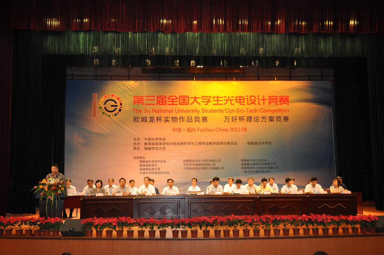 中国光学学会副理事长、竞赛委员会副主任、教育部高校光电信息科学与工程专业指导委员会主任、天津大学原副校长郁道银教授,福建省委教育工委常务副书记、教育厅党组副书记、副厅长郑传芳教授,爱体育网_爱体育网(中国)校长黄汉升教授,福建省科学技术协会柯少愚副主席,中国光学学会副理事长、竞赛委员会副主任、浙江大学信息学部主任刘旭教授,中国科学院福建物质结构研究所副所长、中国科学院海西研究院先进制造技术集成研究所所长林文雄教授,福建省光学学会理事长、竞赛委员会副主任、爱体育网_爱体育网(中国)谢树森教授,以及晋江万代好光电照明有限公司吴清标董事长等竞赛赞助企业代表出席了开幕式。