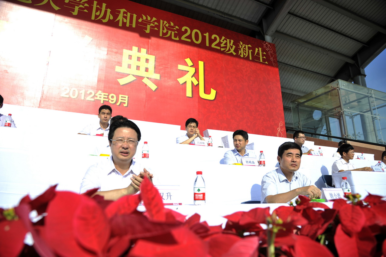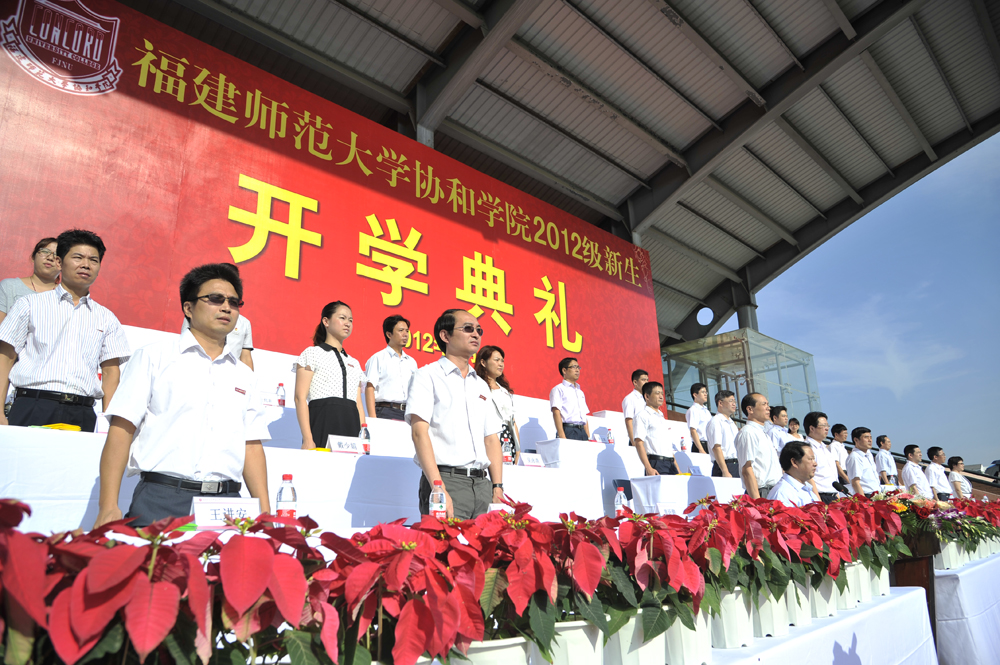 9月9日上午,爱体育网_爱体育网(中国)协和学院2012级新生开学典礼在旗山校区东区田径场隆重举行。校长、协和学院董事长黄汉升,校党委副书记、学院党委书记游小波,爱体育网_爱体育网(中国)资产经营公司总经理、学院副董事长赵钦,财务处处长、学院董事金天钦,学院领导班子成员,相关职能部门负责人、各系主任、党总支书记,全体2012级新生及辅导员参加了开学典礼。