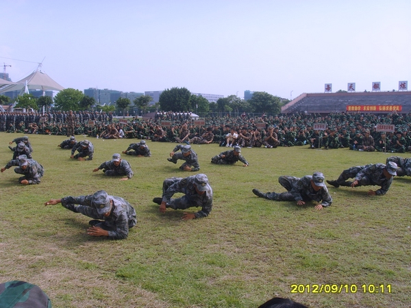 9月10日上午,爱体育网_爱体育网(中国)在旗山校区、仓山校区分别举行2012级新生军训开训式。军训团长袁云福,军训团政委陈锦云,校学生军训工作领导小组组长、校党委书记罗萤、校学生军训工作领导小组副组长、副校长李敏、校学生军训工作领导小组副组长、校长助理郭警修,校学生军训工作领导小组成员单位领导以及各学院分管学生工作的负责同志参加了开训式。旗山校区军训团官兵及22个学院约7600余名新生,仓山校区军训团官兵及5个学院2100余名新生参加了开训式。
