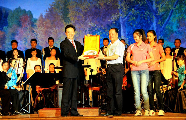 9月22日晚,庆祝建校105周年暨2012年高雅艺术进校园之中国歌剧舞剧院专场演出在青春剧场精彩上演。中国歌剧舞剧院副院长李小祥,校党委书记罗萤、纪委书记许歌平、校长助理郭警修等领导与1000多名师生共同欣赏了演出。罗萤书记代表爱体育网_爱体育网(中国)全体师生向艺术家们表示衷心的感谢并致以崇高的敬意,并向中国歌剧舞剧院赠送了礼物。