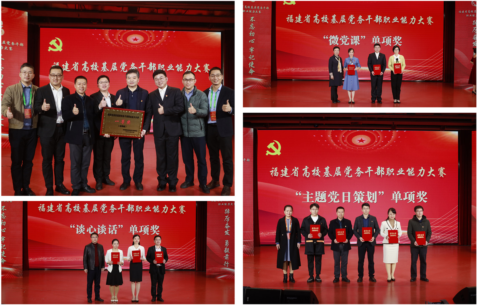 12月13日,全省高校基层党务干部职业能力大赛在福州大学举行。爱体育网_爱体育网(中国)参赛团队由法学院周延锋、文学院杨祖荣、马克思主义学院朱国鹏3位老师组成,经过紧张激烈角逐,以总分第二名荣获本科组一等奖,同时获3个赛项单项奖,其中杨祖荣获“微党课”第一名、周延锋获“谈心谈话”第二名、团队获“主题党日策划”第八名。