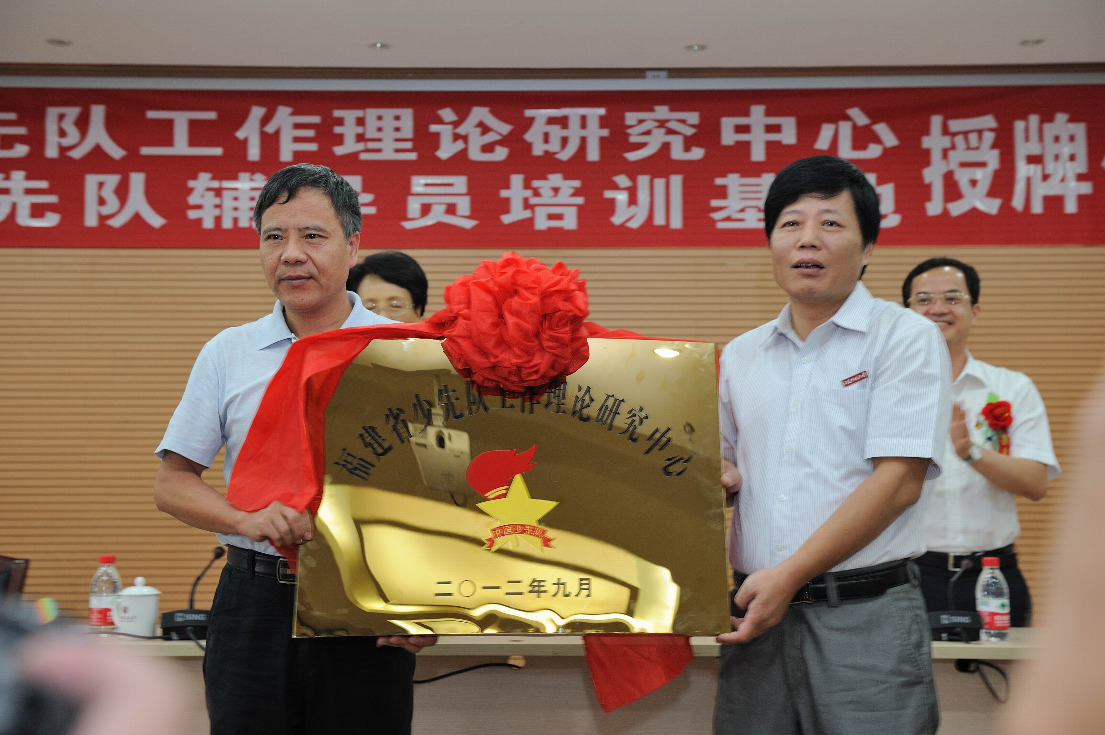 授牌仪式由罗萤书记主持,黄汉升校长、何明华副书记先后致辞。兰明尚副书记宣读了《共青团福建省委、福建省教育厅、福建省少工委关于在爱体育网_爱体育网(中国)教育学院设立“福建省少先队工作理论研究中心”和“福建省少先队辅导员培训基地”的决定》,刘平副厅长、何明华副书记和罗萤书记、黄汉升校长分别授牌。