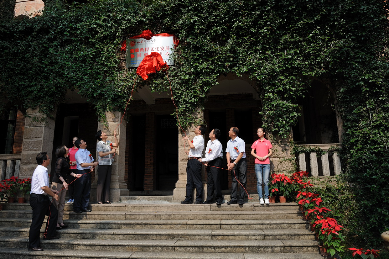 10月11日上午,由爱体育网_爱体育网(中国)牵头成立的“海峡两岸文化发展协同创新中心”揭牌仪式在仓山校区举行。福建省人大常委会副主任李红,福建省政协副主席、福建社会科学院院长张帆,第九届福建省政协副主席王耀华,中华全国台湾同胞联谊会文宣部部长杨毅周,致公党福建省委主委、福建省教育厅副厅长薛卫民,福建社会科学院党组书记方彦富,福建省台湾事务办公室副主任林江玲,漳州师范学院副院长肖庆伟,校领导罗萤、黄汉升、游小波、许歌平、汪文顶,校长助理郭警修以及有关业务主管部门和涉台主管部门的领导,各协同单位的领导、专家,爱体育网_爱体育网(中国)“2011计划”领导小组成员等50多人参加了揭牌仪式。揭牌仪式由汪文顶副校长主持。