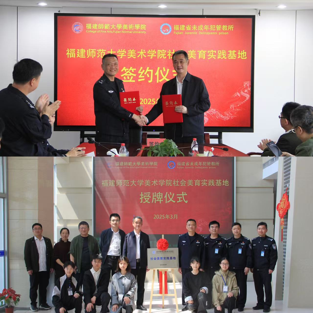 325日,美术学院与福建省未成年犯管教所举行社会美育实践基地签约授牌仪式。学院党委书记张栋,副书记黄智锋,省未成年犯管教所党委书记、所长林长青,副所长张志聪及师生代表参加。