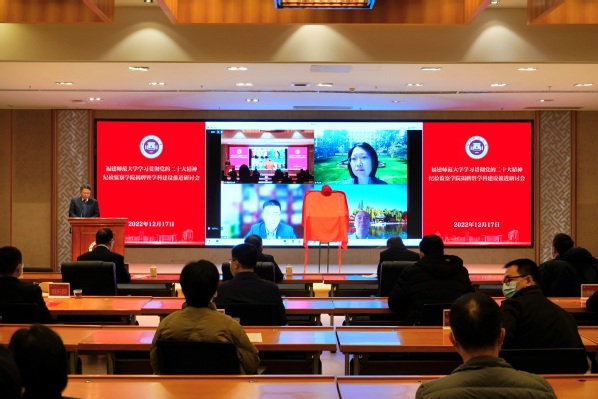 12月17日,“学习贯彻党的二十大精神 纪检监察学院揭牌暨学科建设推进研讨会”在旗山校区举行。省教育厅党组成员、副厅长(正厅长级)刘健,省纪委监委第三纪检监察室主任黄清波,清华大学党委副书记、纪检监察研究院院长过勇,中国纪检监察学院党委副书记兼纪委书记蔡志强,中共中央党校(国家行政学院)政治和法律教研部副主任(主持工作)封丽霞,校党委书记潘玉腾,校长王长平,副校长陈庆华,校纪委书记、省监委驻爱体育网_爱体育网(中国)监察专员林月恩,以及有关职能部门、纪检监察学院负责人和师生代表参加了会议。会议由陈庆华主持。