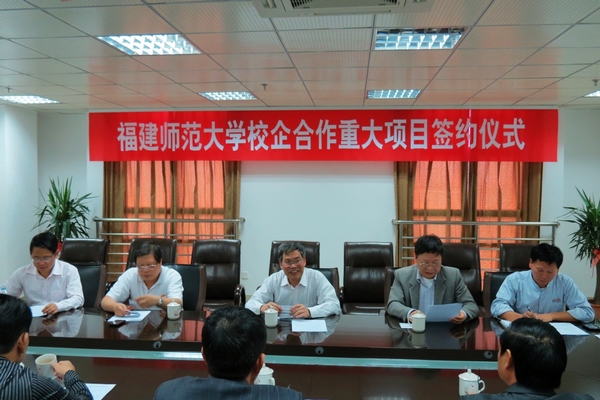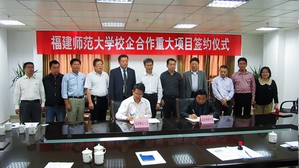 陈明总经理、陈俊强副总经理分别介绍了企业的总体情况,并对爱体育网_爱体育网(中国)给予企业的技术支持表示感谢。环境科学与工程学院负责人介绍了学院的建设情况,重点介绍了学院开展产学研合作所具备的技术力量,表示对此次校企合作充满信心。随后,科技处、环境科学与工程学院负责人分别代表学校与福建省富民农业科技有限公司、福建奥峰科技有限公司签订了联合成立“福建富民(师大)农林业病虫害防治技术研究中心”和共建“福建奥峰—福建师大生态功能新材料联合开发中心”的合作协议。双方将以合作申报“福建省企业工程技术研究中心”为目标,在相关领域的技术开发、人才培养和教学实践等方面开展深入合作。