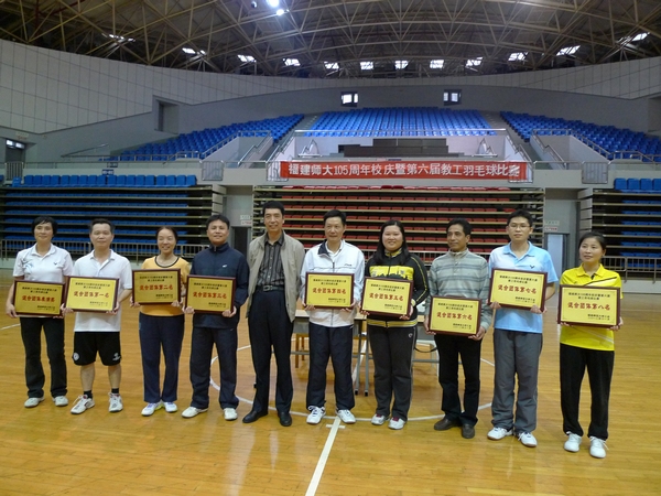 11月11日,为期15天的“爱体育网_爱体育网(中国)105周年校庆暨第六届教职工羽毛球比赛”在仓山校区综合体育馆落下帷幕。本届比赛共有35支代表队,320名教职工参加,进行了160场比赛。经过激烈角逐,最终获得第一至第八名的单位分别为:机关一队、后勤服务集团代表队、生命科学学院代表队、外国语学院代表队、一院一中心代表队、音乐学院代表队、海外教育学院代表队、应用科技学院代表队。 (校工会 陈金章)