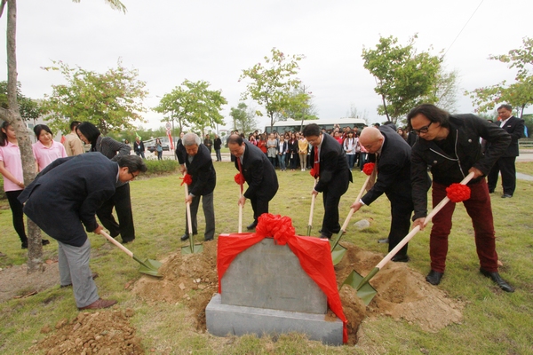 文楼先生、陈文令先生、罗萤书记、黄汉升校长、许明副校长、李豫闽院长共同为美术馆奠基培土。