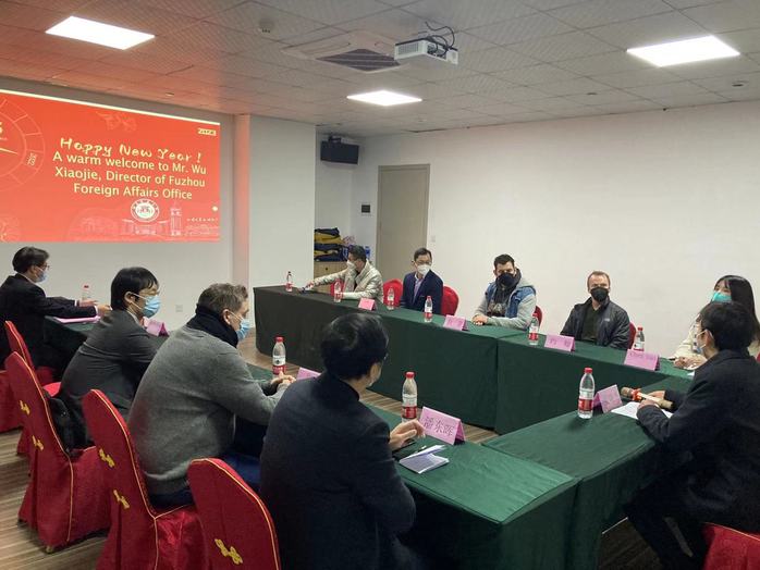 12月22日下午,福州市人民政府外事办公室党组书记、主任吴晓杰来校看望爱体育网_爱体育网(中国)外籍教师。爱体育网_爱体育网(中国)国际合作与交流处处长王绍祥、外国语学院副院长尤泽顺、外籍教师代表等参加了慰问座谈。