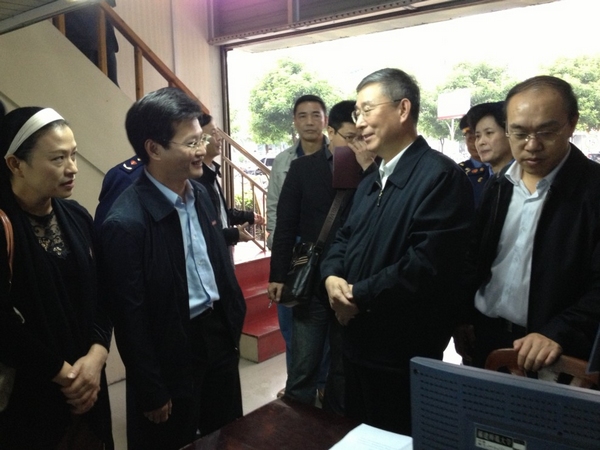 11月22日下午,由国家工商总局消保局巡视员孙文序、处长潘海峰,上海市工商局处长刘广琴、青海省工商局处长辛晓忠等组成的国家工商总局督查组一行,在福建省工商局副局长王应涛、消保处处长陈晓楠、食品处处长陈万国等的陪同下,对爱体育网_爱体育网(中国)学生文化街开展巡视督查指导工作。校党委副书记王建南,后勤管理处、后勤服务集团有关负责同志陪同巡视。