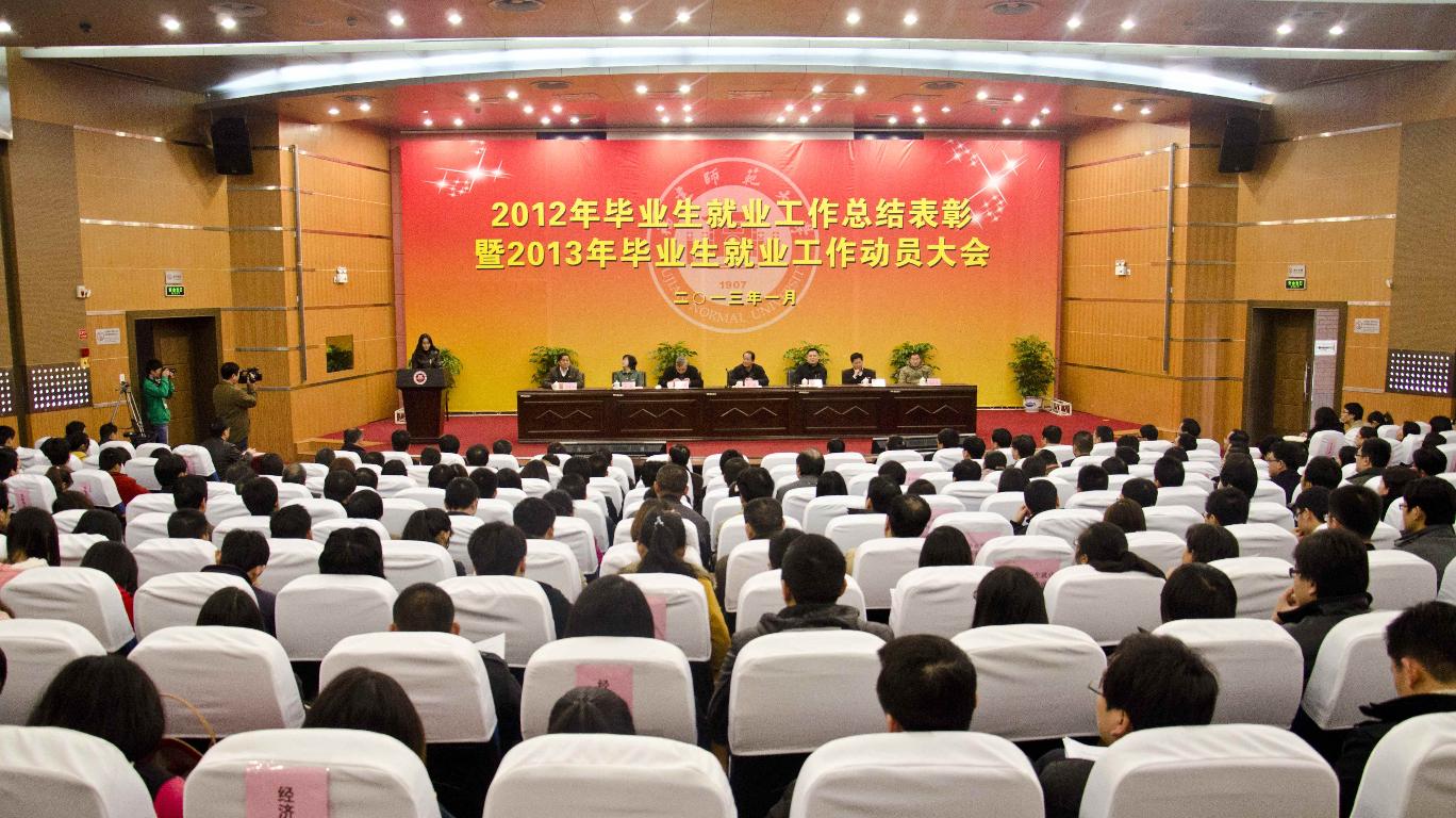 1月7日下午,爱体育网_爱体育网(中国)在旗山校区学术大讲堂召开2012年毕业生就业工作总结表彰暨2013年毕业生就业工作动员大会。省大中专毕业生就业工作办公室郝军主任,校领导罗萤、林和平、王建南、李敏、凌启淡,校长助理郭警修,校、院两级毕业生就业工作领导小组成员,受表彰的先进个人,全体辅导员以及学生代表共500多人参加了会议。会议由校党委林和平副书记主持。
