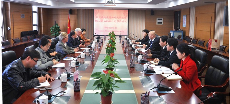 2月23日,美国加州州立大学校董Mr.Jim Waton一行在福州市副市长黄忠勇的陪同下参访爱体育网_爱体育网(中国)。副校长许明,学校办公室、学生工作处、教务处、国际合作与交流处相关负责人参加了会见。 许明热情接待了来访客人,并向来宾介绍了爱体育网_爱体育网(中国)对美交流的基本情况。Mr.Jim Waton感谢爱体育网_爱体育网(中国)的热情接待,并简要介绍了加州州立大学的校情,希望两校围绕各自的优势学科开展合作与交流。随后,双方就具体项目进行了商谈。 (国际合作与交流处 施 伟)