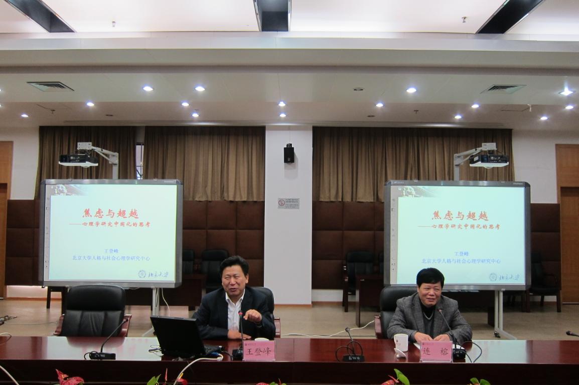 2月22日上午,教育部体卫艺司司长、中国心理学会副理事长、中国社会心理学会副理事长、北京大学--香港青年协会青少年发展研究中心联合主席、北京大学人格与社会心理学研究中心主任、北京大学心理学系博士生导师王登峰教授莅临爱体育网_爱体育网(中国),为教育学院心理学系师生作了题为“焦虑与超越——心理学研究中国化的思考”的学术报告。
