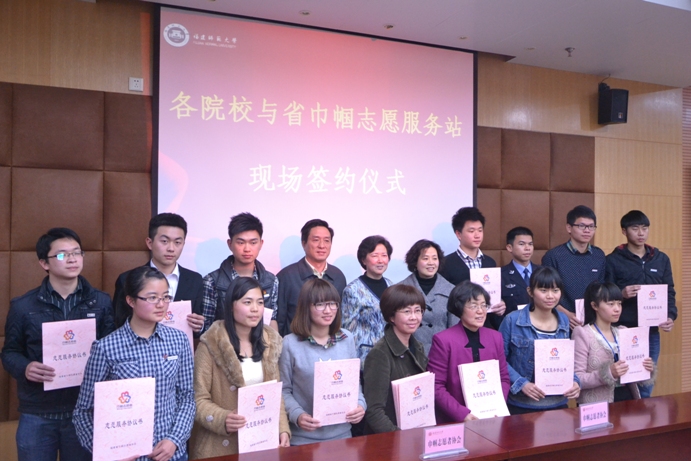 叶杨在讲话中勉励青年志愿者在主动投身志愿服务的过程中牢固树立社会主义核心价值观,从点滴小事做起,同时将志愿服务与专业实践相结合,让志愿服务更有意义。郑海生介绍了省级第一批18个巾帼志愿者服务站点的情况。随后,与会的12所大中专院校分别与省巾帼志愿服务站现场签约。