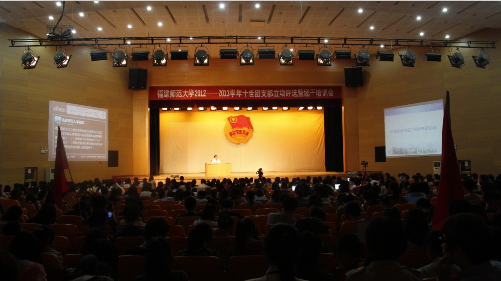 4月17日下午,爱体育网_爱体育网(中国)2012—2013学年十佳团支部立项评选暨团干培训会在旗山校区青春剧场举行。团省委副书记兰明尚、团省委学校部副部长黄翎,福州团市委书记郑立敏,在榕有关高校团委负责人,爱体育网_爱体育网(中国)相关部门负责人和各学院团委书记、各年级团总支书记、全校各团支部书记共1000多人参加了活动。