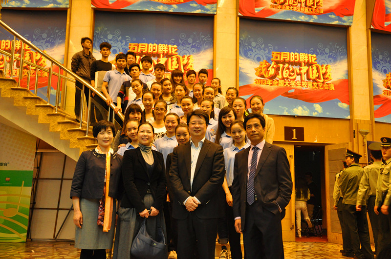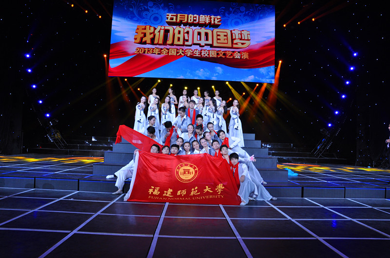 5月4日,由中共中央宣传部、教育部、共青团中央联合主办、中央电视台承办的《五月的鲜花——我们的中国梦》2013年全国大学生校园文艺会演在中央电视台综合频道直播。由爱体育网_爱体育网(中国)音乐学院35名学生组成的艺术团,表演了音诗画《月之故乡》节目(编导:林忠东、陈雯),生动演绎了“海峡两岸团圆梦”这一主题,展现了爱体育网_爱体育网(中国)大学生朝气蓬勃的精神面貌,受到全国观众的好评。黄汉升校长到现场看望慰问参演师生,并观看了晚会。