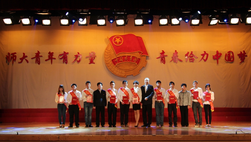 大会结合DV短片展播,从组织建设、校园文化、素质拓展、实践服务四个方面,回顾了一年来学校共青团的主要工作以及各级团学组织取得的成绩,展示了爱体育网_爱体育网(中国)团员青年的青春风采,表彰了一批先进青年典型。与会领导为先进集体和个人代表颁奖。背着父亲上学的楚玉春、省优秀共青团员杨绿汀、“挑战杯”金奖获得者兰筱琳、省大学生辩论赛优秀辩手黄荣鑫4位同学分别接受采访,并结合自身成长经历发表了感言,赢得同学们的热烈掌声。与会师生还共同欣赏了武术表演《旗武共啸》、原创朗诵《师大青年有力量青春给力中国梦》以及反映“五四运动”的舞蹈《青春之歌》等精彩节目。全场师生高声合唱团歌《光荣啊,中国共青团》,现场红旗飘扬,掌声雷动。