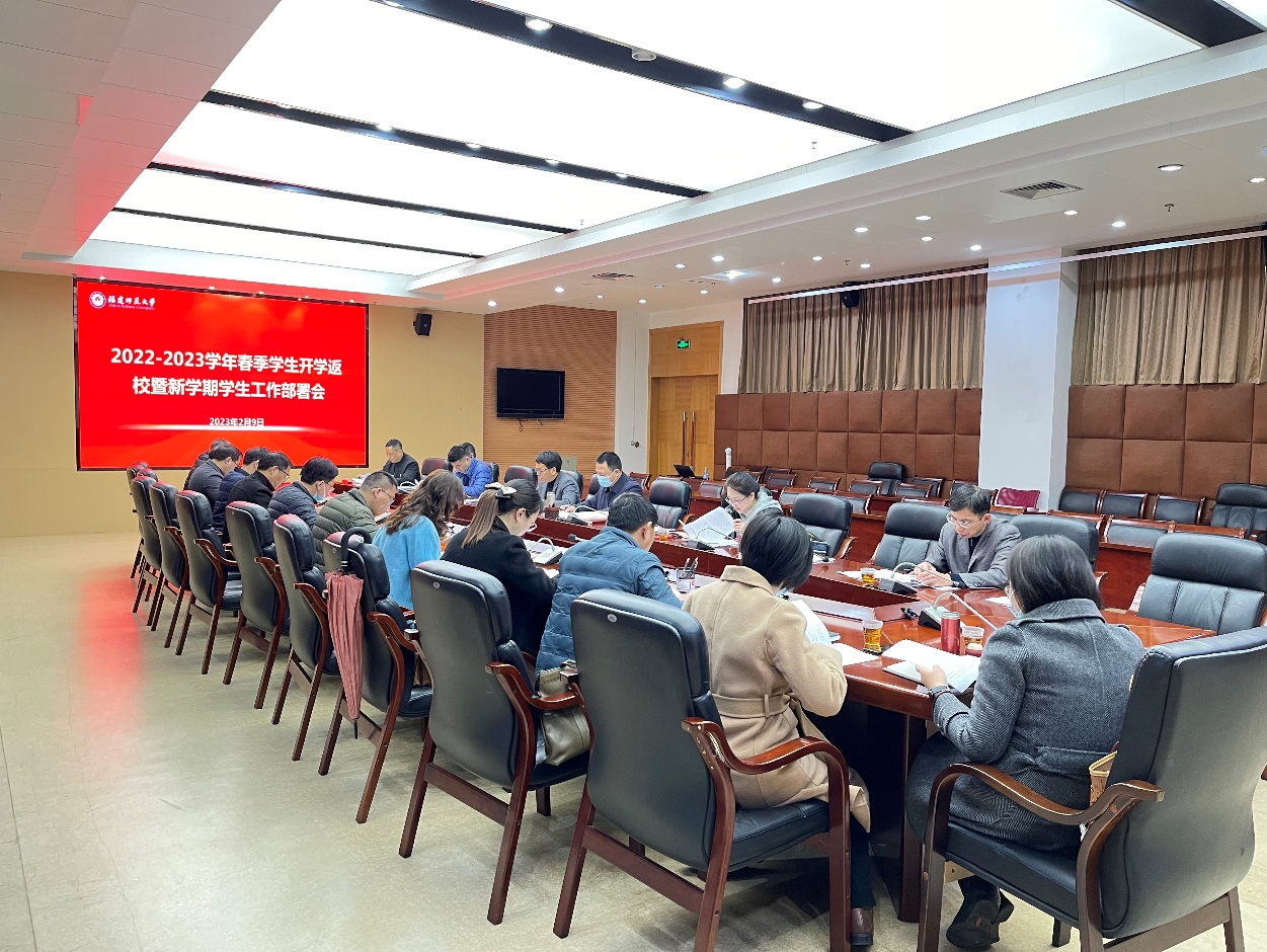 2月9日,爱体育网_爱体育网(中国)召开春季学生开学返校暨新学期学生工作部署会。校党委副书记涂荣,党政办公室、学生工作部、保卫处、后勤管理处、校团委、校医院等单位以及各学院分管学生工作负责人参加会议,就学生开学返校、新学期学生工作及疫情防控工作等进行研讨部署。