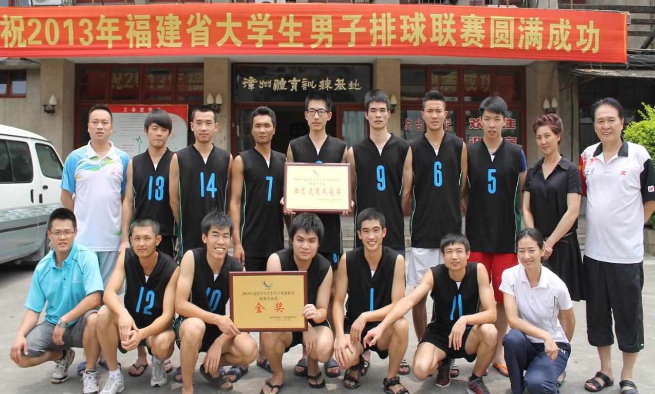 5月31日至6月10日,由福建省教育厅和福建省体育局主办、福建省大学生体育协会承办、福建省大学生体育协会排球分会协办的2013年福建省大学生男子排球比赛在漳州体育训练基地(主赛场)、集美大学和闽南师范大学(分赛场)举行。全省共有体育专业组的5支代表队,高职高专组的7支代表队和普通本科组的16支代表队参加了比赛。 经过激烈角逐,爱体育网_爱体育网(中国)体育专业组男排队荣获金奖和体育道德风尚奖;普通本科组男排队获得银奖。 (体育科学学院 李一承)
