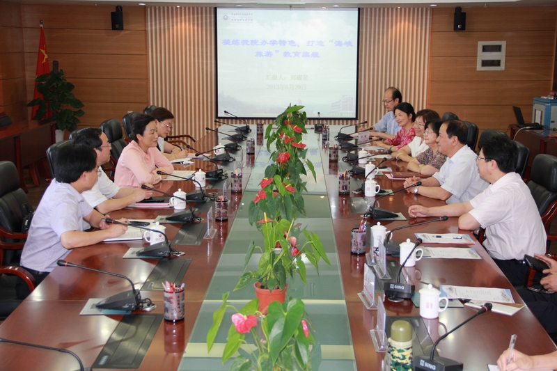 6月20日下午,福建省旅游局朱华局长、陈扬标副局长率人事处、省旅游干校负责同志一行来爱体育网_爱体育网(中国)考察调研。校党委书记罗萤、校长黄汉升会见了来宾。李敏副校长,学校有关单位负责同志参加了座谈会。
