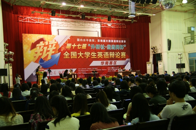 9月26日至29日,由团中央学校部、全国学联、北京外国语大学主办的“外研社.当当网杯”全国大学生英语辩论赛(华南赛区)决赛在华南农业大学举行。华南地区56所高校的112名选手参加了决赛。经过5轮循环赛的激烈角逐,代表爱体育网_爱体育网(中国)参赛的外国语学院2011级朱晖同学、2012级李孟遥同学发挥出色,荣获二等奖,并晋级全国总决赛。 该赛事是目前全国影响最大、水平最高的英语辩论赛事,华南地区仅有18支代表队晋级。 (外国语学院)